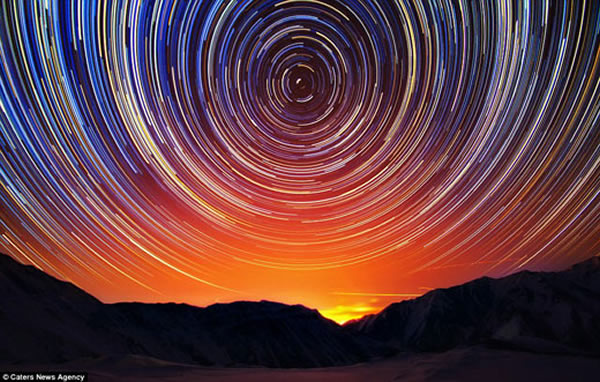 自远古以来,人类就开始关注夜空中那些貌似静态呈现的美丽繁星,它们总是笼罩着一层神秘的色彩。近日,来自哈萨克斯坦的的一位27岁业余年轻摄影师就用它敏锐的目光和长时间的曝光,趁着星星们在夜空中发光摇曳时,捕捉到了它们令人吃惊的快速移动瞬间。数颗繁星在夜空中旋转起舞,场面十分美丽惊人。