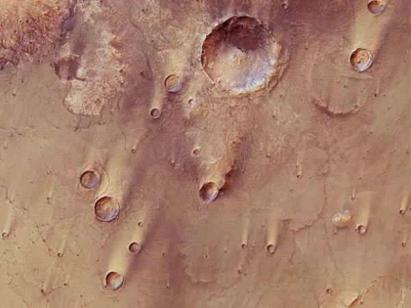 一幅新公布的照片,由欧洲航天局的“火星快车”探测器拍摄,展示了火星大瑟提斯地区暴露在风中的陨坑。大瑟提斯是一个面积巨大的火山平原,位于火星赤道附近。这个平原的面积大约在800×930英里(约合1300×1500公里)左右,天文爱好者可以在自家后院借助望远镜进行观察。从地球上看,这个平原好似一个暗斑,很容易辨认。