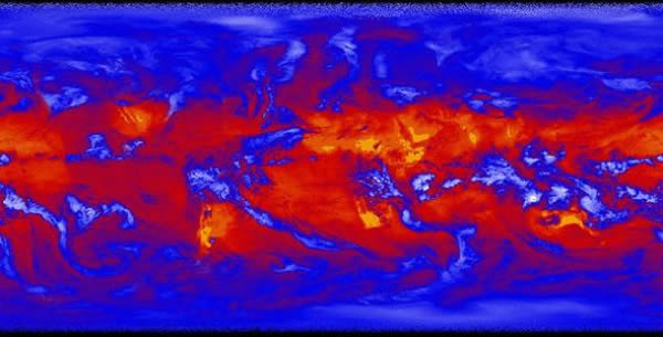 绚烂的漩涡代表地球释放到太空的能量,图像来自于美国宇航局“苏奥米NPP”卫星携带的云与地球辐射能量系统测量仪(以下简称CERES)。亮黄色区域温度最高,向太空喷射最多能量,暗蓝色和白色区域温度较低,喷射的能量也较少。1月末,CERES开始收集科学数据,是1984年以来最新一台用于监测地球“能量预算”的设备。连续的参照数据记录将帮助科学家进一步了解地球气候如何因人类活动和自然过程发生变化。