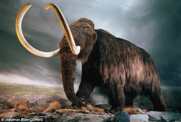 猛犸象复原图。猛犸生活在15万年前的北美洲和欧洲境内,在西伯利亚曾发现保存完整的猛犸尸体。