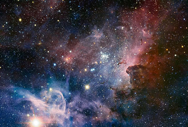 在这张照片中,船底星云位于图片左下方,被气体云所环绕,在猛烈紫外线辐射下发光。船底星云是天文学家研究恒星诞生和早期生命阶段的理想实验室。