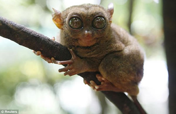 据悉,眼镜猴玲珑可爱,身材十分娇小,比人们的手掌大不了多少。重量约为120克左右。它们属于小型灵长类动物。 眼镜猴的脑袋能够转动180度,浑身长满了柔软而厚实的毛。 它们经常抱着树枝趴在树上或在树枝之间跳跃。在它们的趾端有一个盘子形状的肉垫,这就可以使它们能牢牢地攀附在树枝上。而且,它们还是夜猫子,经常在夜里出来捕食昆虫。除此之外,它们还有一条长出身体几乎一倍的尾巴。因为这条尾巴,眼镜猴不仅能准确地在树枝间跳来跳去,也可以稳稳地趴在树枝上不掉下来。 目前,眼镜猴已经被划为濒临灭绝的物种,需要人类的保护。