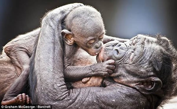 表达喜爱的行为在野生动物之间并不少见,但这在人工饲养的动物中尤为显著。据倭黑猩猩爱好者格雷厄姆·麦克乔治(Graham McGeorge)介绍,“我花3个月的时间记录下这个动物园内雌性占主导地位的动物世界,发现小猩猩们直到7岁才离开母亲独自生活,因而这里‘被过度宠溺’的倭黑猩猩们难以长出浓密的毛发。”