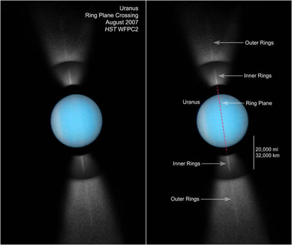 天王星的自转轴倾角达到97度,也就是说,这颗行星几乎是躺倒在轨道上