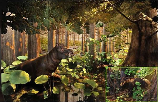 埃尔斯米尔岛始新世复原图,图中为冠齿兽