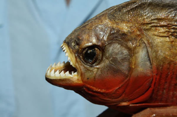 巨滑舌鱼的鳞片可以抵抗住水虎鱼锋利的牙齿