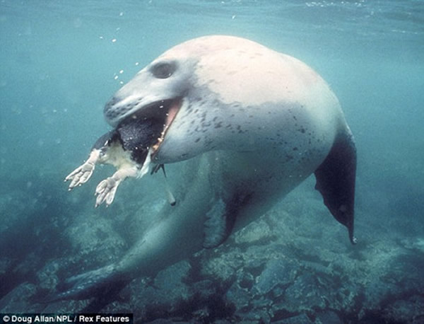 海豹“微笑”上镜 捕食显露凶残一面 来源: 神秘的地球 时间:2012年2月18日 10:17 海豹对着陌生镜头摆出“微笑” 海豹正吞食捕获的企鹅 近日,摄影师道格·艾伦在南极洲海域拍摄海豹的照片。没想到海豹对于陌生的镜头并不排斥,对着陌生的摄影师摆出类似于“微笑”的表情。 不过,摄影师也拍下了海豹捕食时的“凶残”面貌。在照片中,一只海豹毫不留情地将一只企鹅吞进肚内。 摄影师道格·艾伦长期在最人烟罕至的地方拍摄野生动物,他经常前往南极洲和北冰洋寻找灵感。 中新网2月17日电 上一篇 下一篇 TAG: 海豹