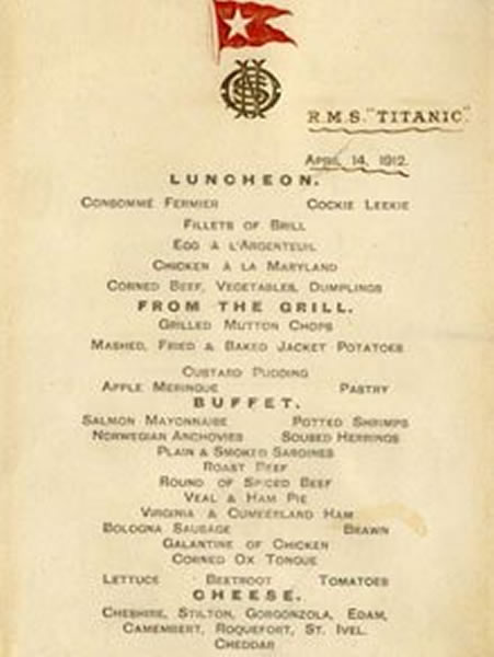 泰坦尼克号上一张“最后的午餐”菜单即将在英国拍卖