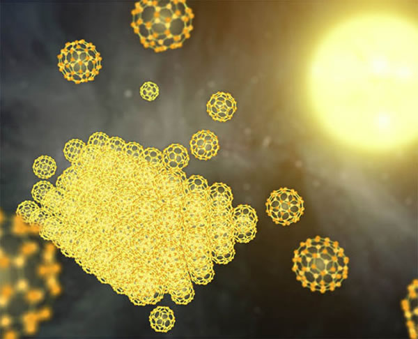 天文学家这次在距地球约6500光年的双星系统“XX Ophiuchi”中,探测到的布基球不是气体形式,而是累积起来形成的微小颗粒。布基球堆叠发出的光线产生一种独特的红外线辐射。领导这项研究的英国基尔大学天文学家奈·埃文斯(Nye Evans)说:“这些布基球就像装在箱子里的橘子那样堆在一起组成固体。我们探测到的这些粒子都非常细小,比一根头发的宽度还小得多,但每个粒子都包含数百万个布基球。”