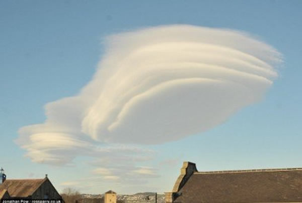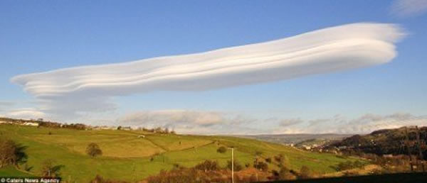 云的形成方向通常与迎面气流的方向相互垂直,与之相关联的现象是飞行员通常要避免飞机与湍流接触。在此之前,去年研究人员在西约克郡也发现不明飞行物状的出现,透镜状的云团在当时还引起的轰动。然而,对于滑翔机的飞行员而言,寻找一个透镜状云是一个值得高兴的事情,因为可为滑翔机带来高度和长距离飞行。
