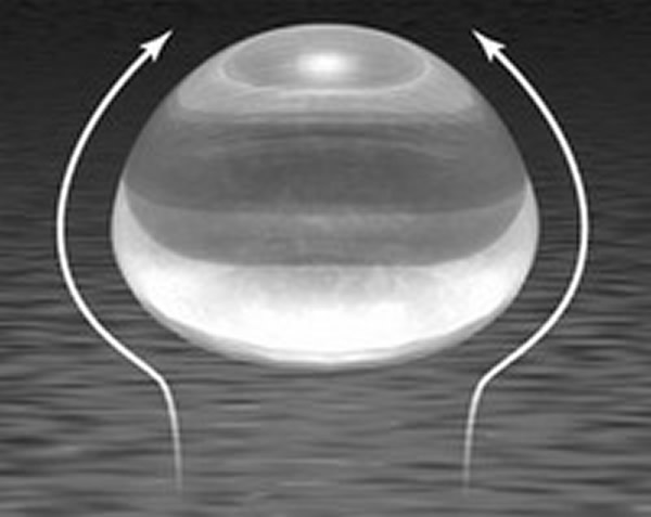 这一数据表明,在北纬30度到南纬30度之间——位于地球赤道周围的相当于从美国路易斯安那州的新奥尔良市延伸到巴西最南端的一条宽阔地带——由地平面上全部雨滴导致空气中流失的能量约合1.8瓦每平方米,这大约相当于一盏夜明灯释放的能量的一半。