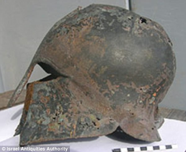 在以色列海法湾发现的古希腊士兵头盔,距今2600年,上面的金箔已遭到腐蚀