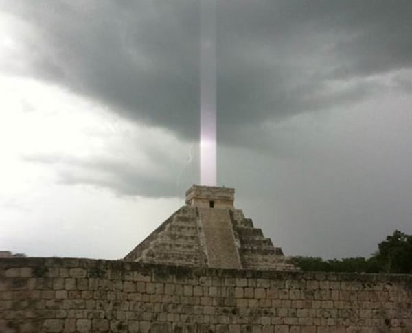 这张令人难以置信的照片是赫克托-西利扎尔拍摄的,2009年他和妻子孩子前往墨西哥奇琴伊察玛雅古城遗址参观时偶然间拍摄到这一奇妙景象。他站在玛雅天神库库尔坎神庙之前,突然雷暴闪电出现在远方,这是一个非常难得的拍摄时机,西利扎尔拍摄了许多张照片,希望能够捕捉到神庙金字塔后方的闪电束。最终他成功了,拍摄到奇妙的闪电情景,犹如神庙射向天空的一道能量光束。