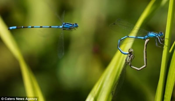 蜻蜓“浪漫交配” 来源: 神秘的地球 时间:2012年3月09日 16:22 两只蜻蜓交配时,摆出浪漫的“爱心”造型,另一只蜻蜓似乎要来搅局 近日一名摄影师在英国肯特郡的一处野生动物保护区拍摄到蜻蜓“浪漫交配”的照片,它们在交配时摆出的造型犹如一颗“爱心”,情意浓浓,十分浪漫。 照片中,两只正在交配的蜻蜓甜蜜地围成了一个“爱心”的形状,旁边一只“争风吃醋”的蜻蜓从远处飞来,似乎要搅乱它们美好的瞬间,来一场“一箭穿心”的表演。 据这位名摄影师称,他原本打算去这个野生动物保护区拍摄一些翠鸟的照片,没想到翠鸟没拍成,竟在一个湖泊边上拍摄到如此浪漫的一幕。 中国新闻网 上一篇 下一篇 TAG: 交配 蜻蜓
