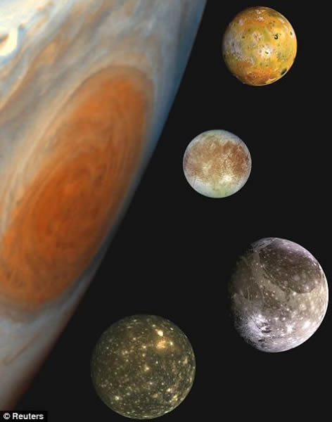 卫星:从上到下,木星的卫星分别是艾奥、欧罗巴、加尼米德和卡利斯特。