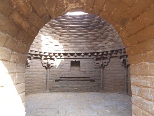 墓葬形制包括砖室墓、砖框墓和竖穴土坑墓三种。砖室墓由长方形墓道、墓门墙、甬道和墓室组成,有的墓门墙上用砖砌出仿木结构的垂柱、雀替、方椽等,方椽上铺瓦,瓦头处承接兽面瓦当和花草纹滴水。墓室的平面形状有圆形、长方形和八角形,墓顶为券顶或穹窿顶,墓壁上多有小龛和仿木结构的砖雕,砖雕内容包括门、窗、立柱、斗栱、灯台等。