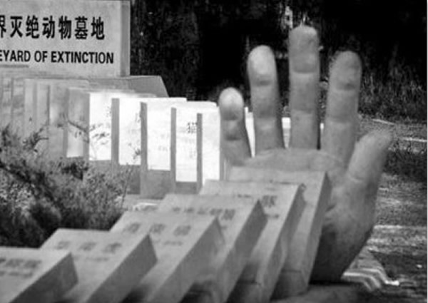 北京麋鹿苑有一个世界灭绝动物墓地,那里排列着近300年来已经灭绝的各种鸟类和兽类的名单,每一块墓碑都代表一种已经灭绝的动物,按照目前的灭绝速度,人类排在倒数第二位,排在鸟类之后,最后灭绝的是鼠类。人类能改变这一切么?