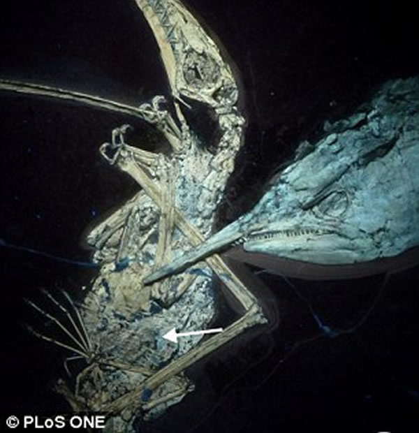 科学家认为,这条古代鱼可能和翼龙战斗了一会,然后沉到氧气含量低的水中,最后因缺氧死亡。