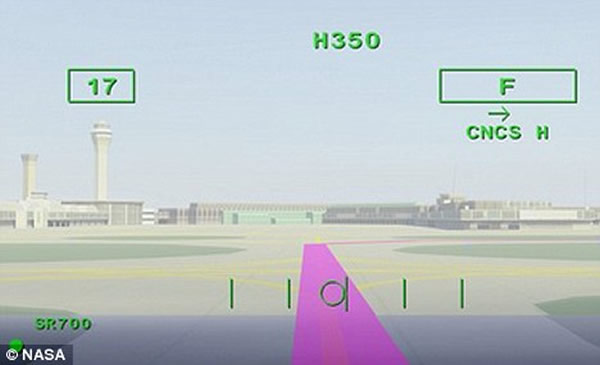 这款神奇的眼镜可以跟踪飞行员的头部运动,使他们看清跑道、塔和其它飞机。甚至当飞行员转动他的头时,眼镜可以实时做出反应,以确保虚拟表象与真实世界相对物始终保持在同一个位置。当遇到大雾天气,这可是一个宝贵的工具。美国宇航局兰利研究中心(NASA’s Langley Research Center)的电子工程师特雷•亚瑟(Trey Arthur)说:“如果飞行员不熟悉机场,他们必须停止,并拉出地图。显示屏上将显示数字航线,可以告诉他们所处什么滑行道,他们需要去的地方,他们前面是什么地方,以及他们如何跟踪跑道的中心线。”