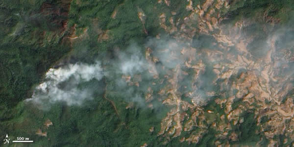 2012年3月4日,美国宇航局泰若卫星(Terra)上的中分辨率成像光谱仪(MODIS)拍下了上面的第一幅照片,显示了泰国部分地区上空的烟雾。同一天,美国宇航局地球观测卫星1号(EO-1)上的先进陆地地成像仪(ALI)拍下了泰国火灾的一幅近景照片(第二幅照片)。