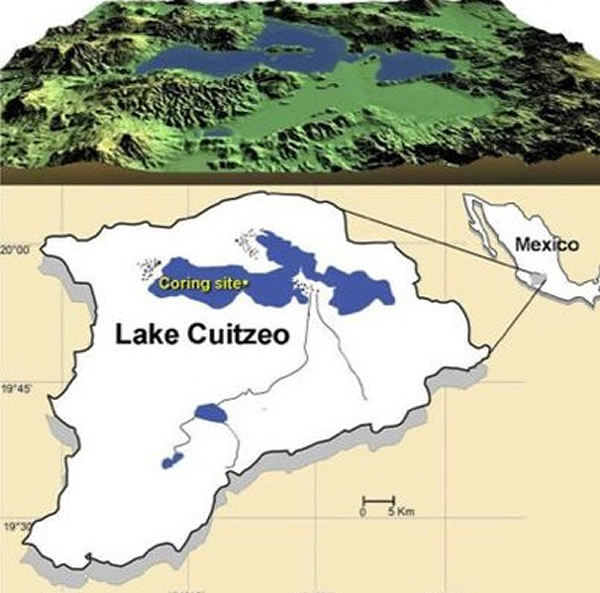 研究人员于墨西哥中心的Cuitzeo湖旁一处沉淀物的薄层中发现该“撞击”线索