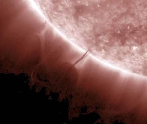 这个神秘物体实际上是日珥,科学家对其了解并不多。日珥内的物质温度低于周围太阳物质,因此呈黑色