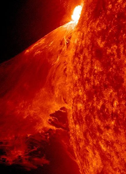 日珥有很多种形态,例如照片展示的大爆发。这幅照片由太阳动力学观测卫星2012年初拍摄
