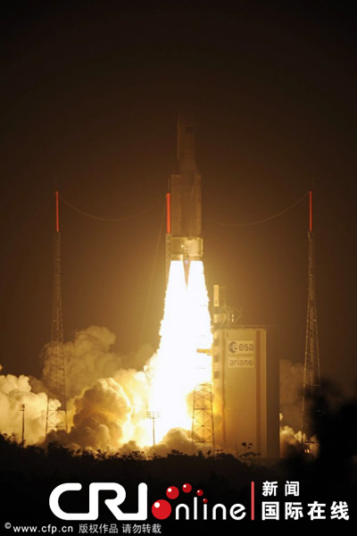 欧洲货运飞船升空向国际空间站提供给养 来源: 神秘的地球 时间:2012年3月23日 21:56 欧洲货运飞船升空向国际空间站提供给养 欧洲货运飞船升空向国际空间站提供给养 北京时间3月23日12点34分,一枚阿丽亚娜运载火箭在法属圭亚那发射,搭载货运飞船“爱德华多-阿玛尔迪”号向国际空间站提供给养,计划于3月28日与空间站接驳,持续至8月。飞船由欧洲航空防务航天集团的阿斯特里姆公司建造,无人驾驶,为空间站运送燃料、食物、衣物和氧气。 CFP 上一篇 下一篇 TAG: 国际空间站 货运飞船