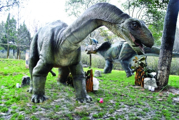恐龙来到白马涧,让游客置身于“侏罗纪时代”。