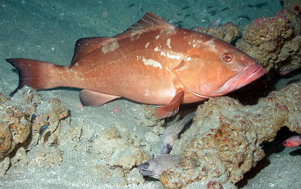 该研究团队制作了一个被称为“滑翔机”的鱼雷形机器人,并在佛罗里达州西部的坦帕湾将其放入海中后收回。在水体中,机器人以锯齿状模式上下升降,每隔五分钟会对海水声音进行25秒钟的取样。在一周的时间里,“滑翔机”还记录了位置数据,并测量了海水的温度、盐度和深度。通过将录音中的咕噜声和口哨声与已知的鱼类声音对比,南佛罗里达大学的研究人员发现,红石斑鱼(如图所示Epinephelus morio)和蟾鱼 (Opsanus spp.) 的声音出现的最为频繁。该团队在本月出版的德国《海洋生态学进展丛刊》上报道了此发现。
