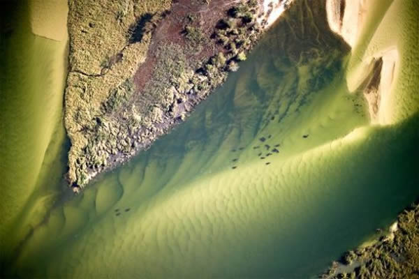 一群牛背鹭聚集于奥卡万戈三角洲的两棵树上。奥卡万戈河是世界上最大的内陆水系之一,其源头位于安哥拉的高地地区,河流流经纳米比亚的卡万戈河,最后流入博茨瓦纳,消失于奥卡万戈三角洲。