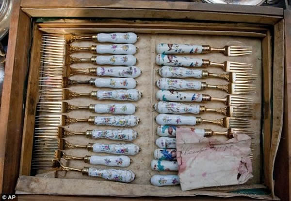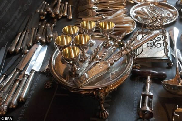 在这栋古宅中发现的珍宝中,有很大一部分银质餐具,上面都刻有俄国最显赫的纳利什基娜家族的名字