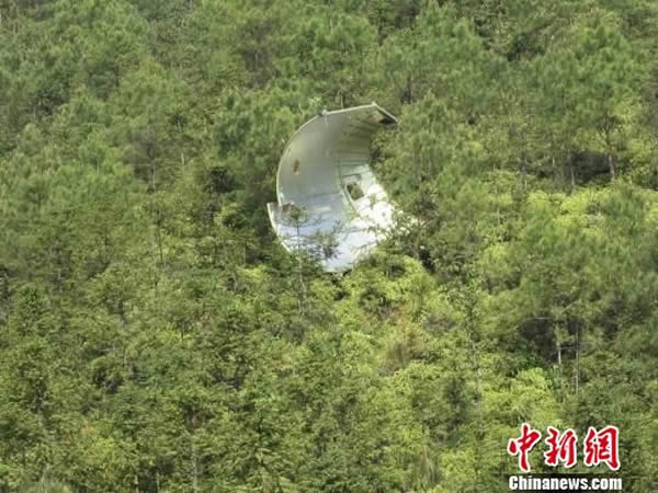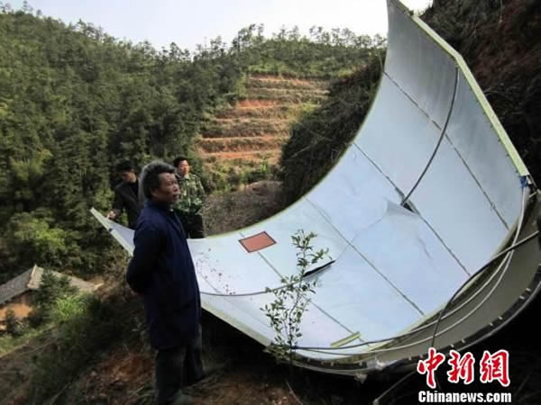 坠落在江西遂川县山区的“亚太7号”卫星整流罩。