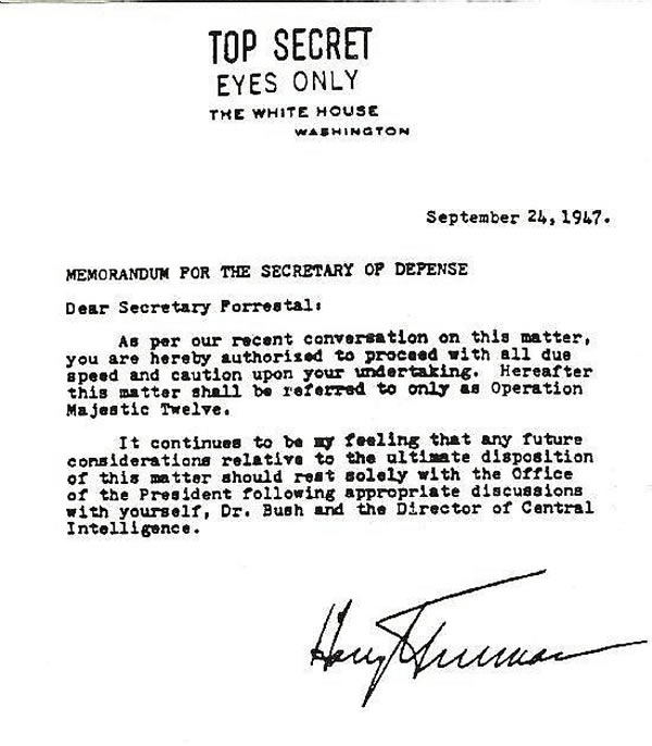 哈利·S·杜鲁门总统签署了一份总统令,组建一个“由科学家、军事领导人和政府官员组成的秘密委员会”,这个委员会名为“Majestic 12”,组建的目的是为了调查罗斯维尔事件。因此就出现了许多的关于MJ-12和51区之间联系的猜测,然而大多数是毫无根据的。无论如何如果“外星残骸”从罗斯维尔运到了51区,看起来MJ-12和这个基地在某种程度上是有联系的。此外,一些人相信Majestic 12是一个更加广阔更加骇人的组织,这个组织的成员全部都是政界、商界和科学界的高层人物,他们被选出来精心策划创建一个单一政府管理的新世界秩序。