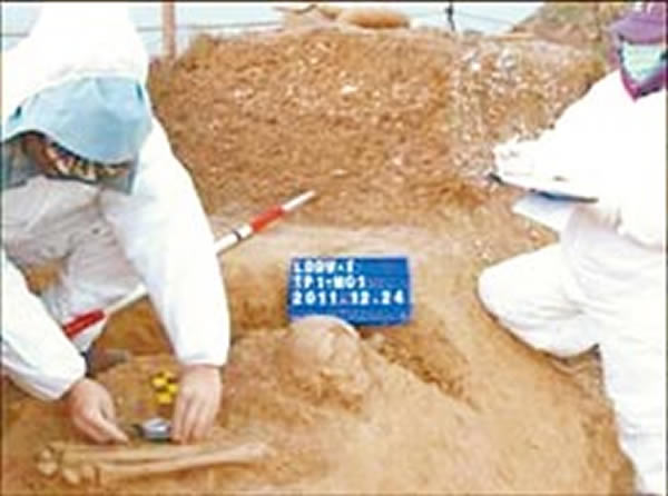 马祖亮岛发现珍贵7900年前完整骨骸,是南岛语族新石器时代最早人类。图为台“中研院”研究员陈仲玉率领的考古队,在亮岛“岛尾一号”遗址挖掘的情形。