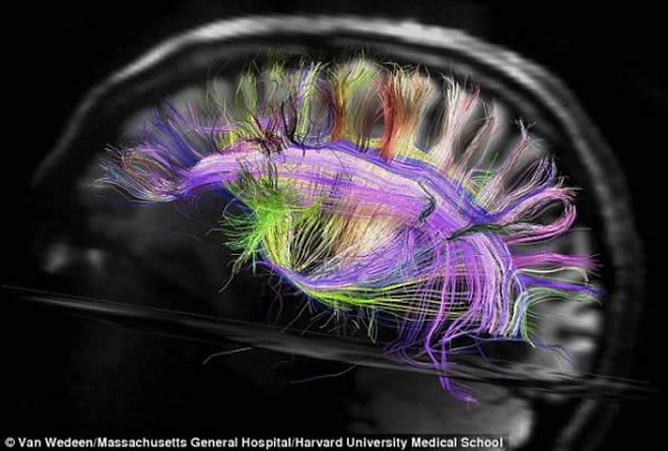 科学家长久以来一直认为大脑的神经线路连接杂乱无章,但根据美国麻省总医院最近进行的大脑成像研究,大脑内的神经纤维呈十字交叉,就像一个棋盘一样。在利用新型先进核磁共振成像扫描仪获取的大脑图像中,这种网格状结构呈现出惊人的细节。