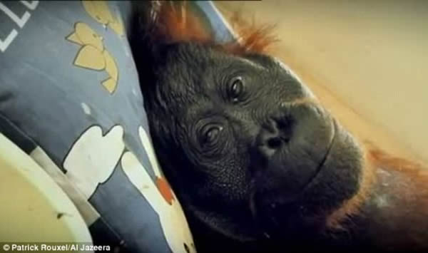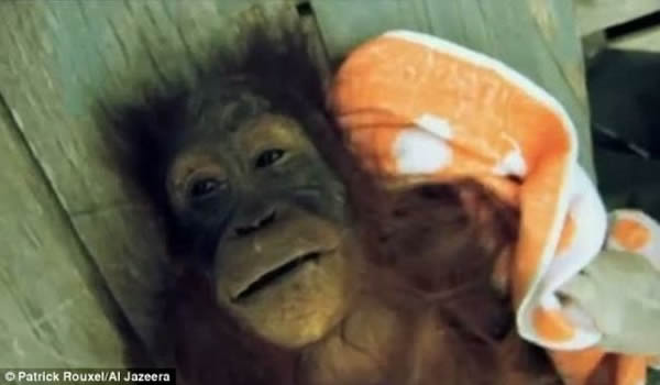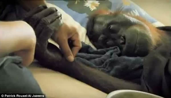 临时的家:格林无助地躺在印度尼西亚加里曼丹岛营救中心的床垫上,几天后死去。