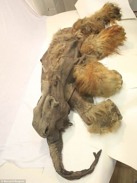 专家认为他们能从这个新发现中获得很多重要信息,不仅包括有关这些动物的,还有冰河世纪与猛犸象生活在一起的人类情况。科学家发现,这头猛犸象死时最多只有三四岁。象牙猎人在西伯利亚最偏远的地区——雅库特的尤斯特-雅尼思科伊地区发现它。
