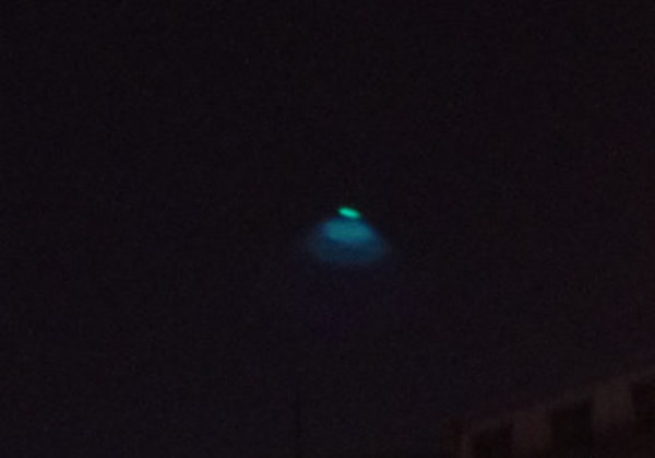 厦门夜空拍摄到蓝绿色UFO