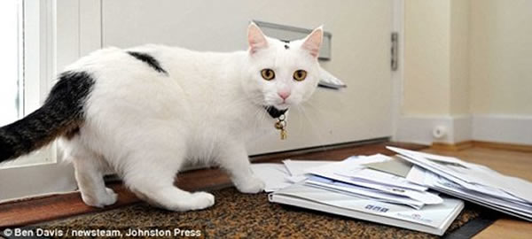 居住在英国剑桥郡的小猫“雪球”近来获得了一个新的外号——“猫忍者”。雪球虽然平常温顺,但却频频袭击邮递员。据悉,英国皇家邮政已经拒绝向雪球家送邮件了,令其主人深觉苦恼。