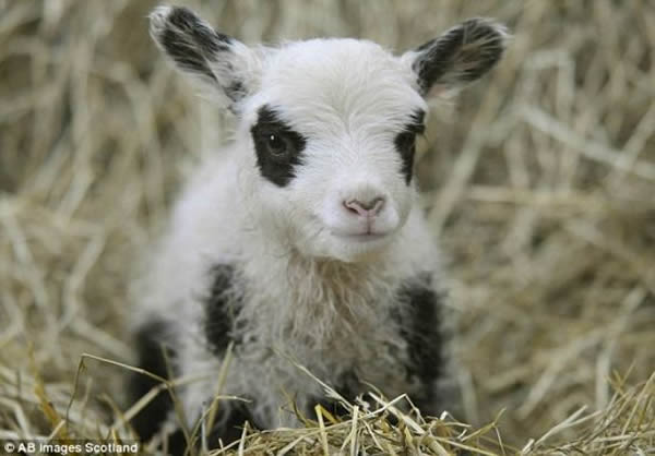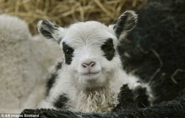 这些羔羊出生时长着像熊猫一样的黑眼睛,主人大为吃惊。