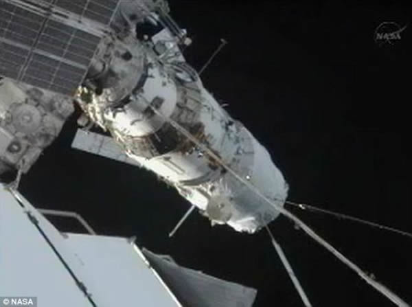 ATV-3货船慢慢进入指定位置,与空间站进行对接
