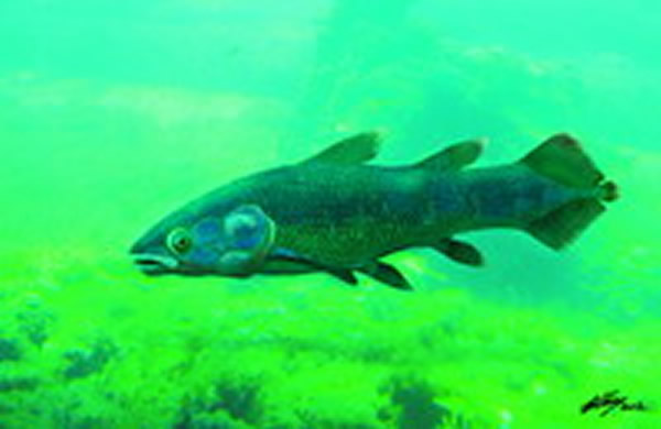 最早的现代型空棘鱼——云南孔骨鱼复原图 Brian Choo绘