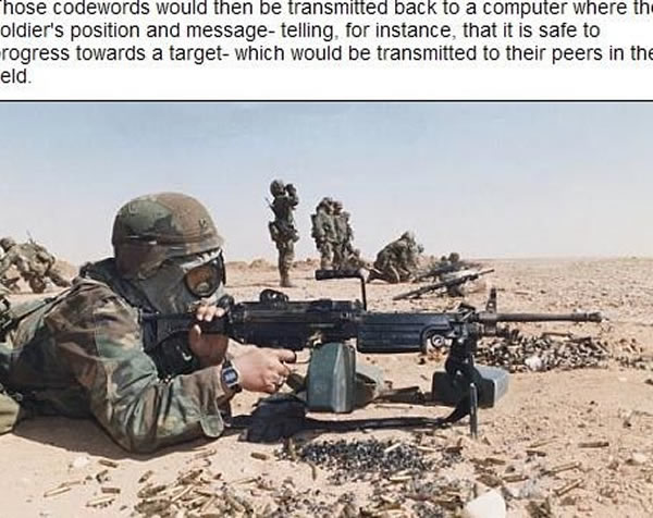 这种高科技很像许多科幻小说中的场景,首先使用头盔上的电极从士兵思维中提取密码,然后将其传回电脑,经过分析整理后再传给战场上的其他士兵。