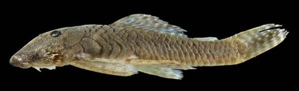 在厄瓜多尔发现的一条新种吸盘嘴甲鲶鱼。研究领导人、奥本大学生物学系博士生米尔顿-塔恩表示:“在意识到它们是新种甲鲶鱼时,我们并没有感到非常吃惊,因为这个鲶鱼家族的成员每年都在增加。”新种甲鲶鱼长2.8英寸(约合7厘米),与其他亲属不同的是,它们的头部并没有甲片,这让塔恩产生浓厚兴趣。头部没有甲片说明这种甲鲶鱼是瘤甲鲶和毛口鲶之间“缺失的一环”。毛口鲶口鼻部没有甲片,与新种甲鲶鱼之间存在血缘关系。