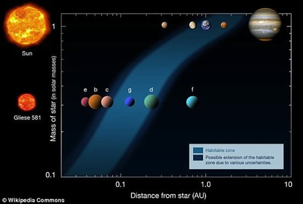 从地球上溅射的岩石可在太空中传播多远?环绕地球(图片顶部中心)的宜居区域最远可抵达Gliese 581