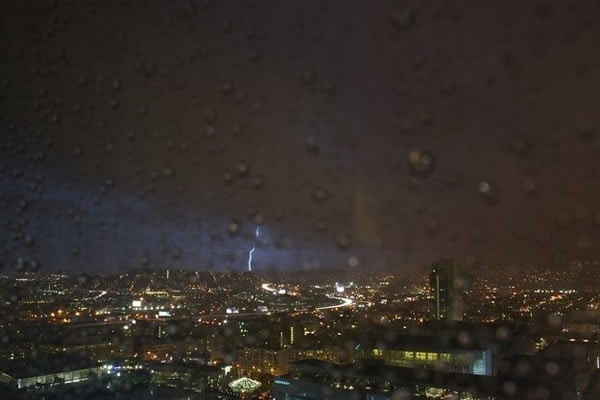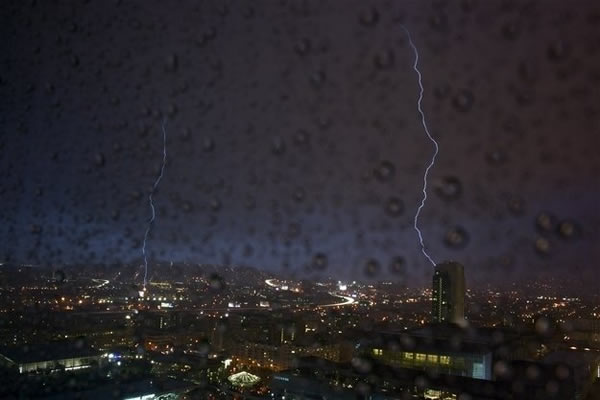 大卫-琼斯从他公寓的窗户里捕捉到了大雨侵盆的旧金山夜晚电闪雷鸣的照片