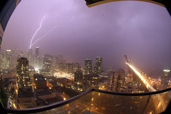 汤姆-罗宾逊捕捉到旧金山闹市区令人印象深刻的闪电照片