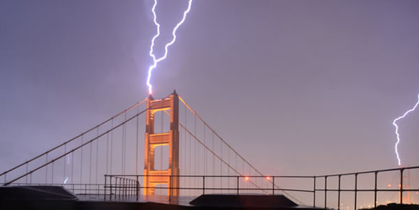 克里斯-布莱恩抓拍到这张闪电击中金门大桥的照片