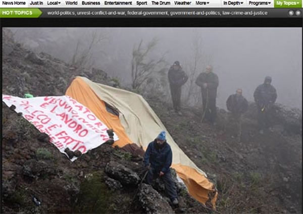 意大利6男子为抗议政府而爬入火山口“定居” 来源: 神秘的地球 时间:2012年4月25日 10:16 意大利6男子为抗议政府而爬入火山口“定居” 据法新社4月24日报道,意大利6名男子于当地时间23日爬进了位于那不勒斯附近的维苏威火山口,并打算在火山口内的一块岩石上度日,以此来抗议政府让他们成了无业游民。 报道称,这些人目前在距火山口10米以下的岩石上,随时面临被滑落石块砸中的危险。他们表示,为了抗议失业,他们将一直在这里呆下去。 据悉,维苏威火山上丛林茂密,上次喷发时间为1944年。意大利公共安全负责人曾警告称,如果维苏威火山度过休眠期再次喷发的话,百万人将遭受威胁。 国际在线 张琳 上一篇 下一篇 TAG: 火山 意大利